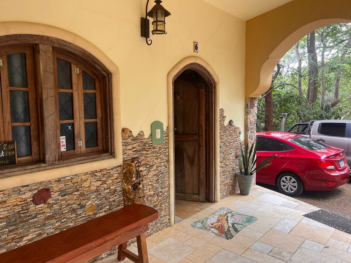 This is a rustic getaway retreat place with amazing nature, from scarlet macaws, monkeys, to deer to cool hermit crabs scurrying around at night. The mosaics and stone work embellished with shells and whimsy continue to amuse throughout your stay. On trees you will find animal art pieces.There is no Wi-Fi and very little cell phone coverage so bring your NON electronic entertainment and enjoy the very quiet and safe beach. The Staff was helpful , but meals were a little sketchy (and not cheap). Think of this as enhanced camping with lovely surroundings. Your room will have a clean but very firm bed, huge pillows, no blankets. There is a nice refrigerator, but no microwave or coffee maker. Just bring your own food, utensils as if camping, and it will be a fun time. We had periods with no electricity , or no water. As others have commented the access road is close to terrible. Come, relax and stay.